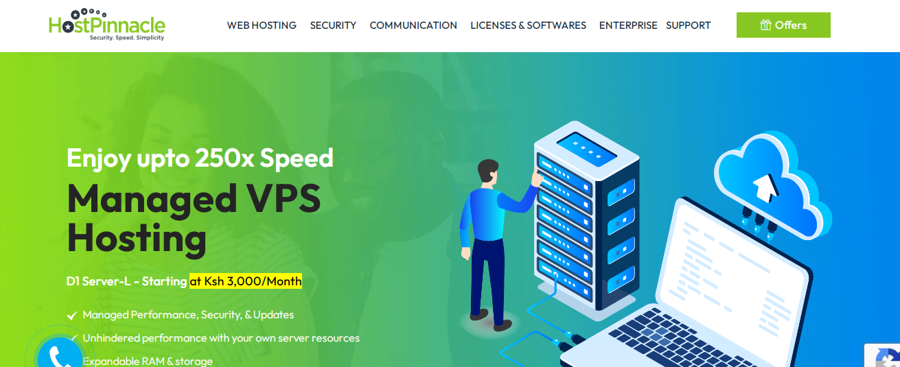 Hostpinnacle Cloud is one of the fastest-growing web hosting companies in Kenya. They boast state-of-the-art NVMe-SSD powered servers which are 900% faster than traditional SATA drives and 200% faster than SSD drives. Nevertheless, their shared web hosting packages range from Ksh 4200 per year for 35 GB NVMe SSD disk space to Ksh 12500 per year for Unlimited NVMe SSD disk space.